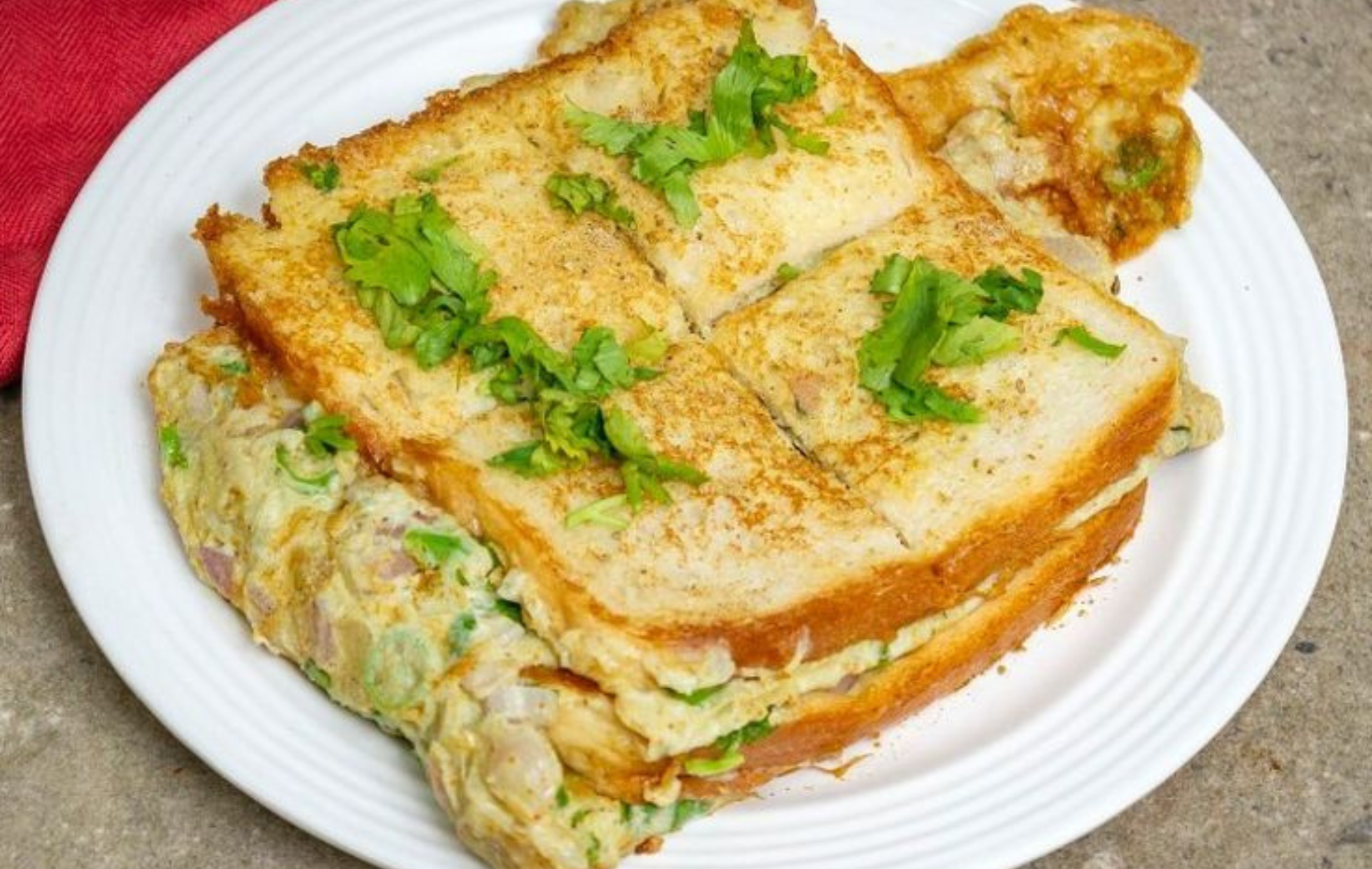Classic street-style bread omelette with fluffy egg, onions and desi spices, served hot between soft bread slices for a quick tasty snack.