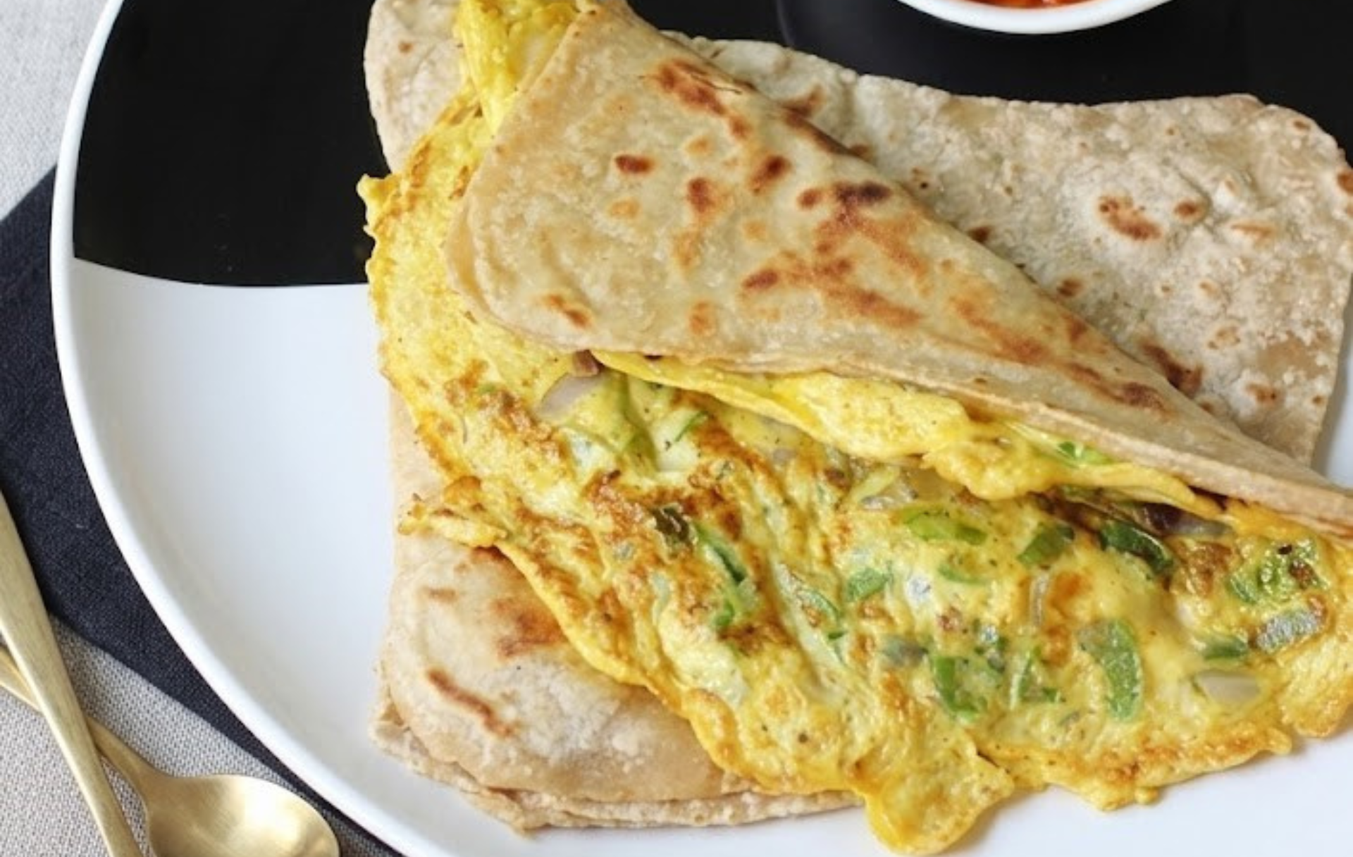Fluffy, golden paratha layered with seasoned egg filling, roasted in desi ghee and served hot with chutney & pickle at Flavour Of Champaran.