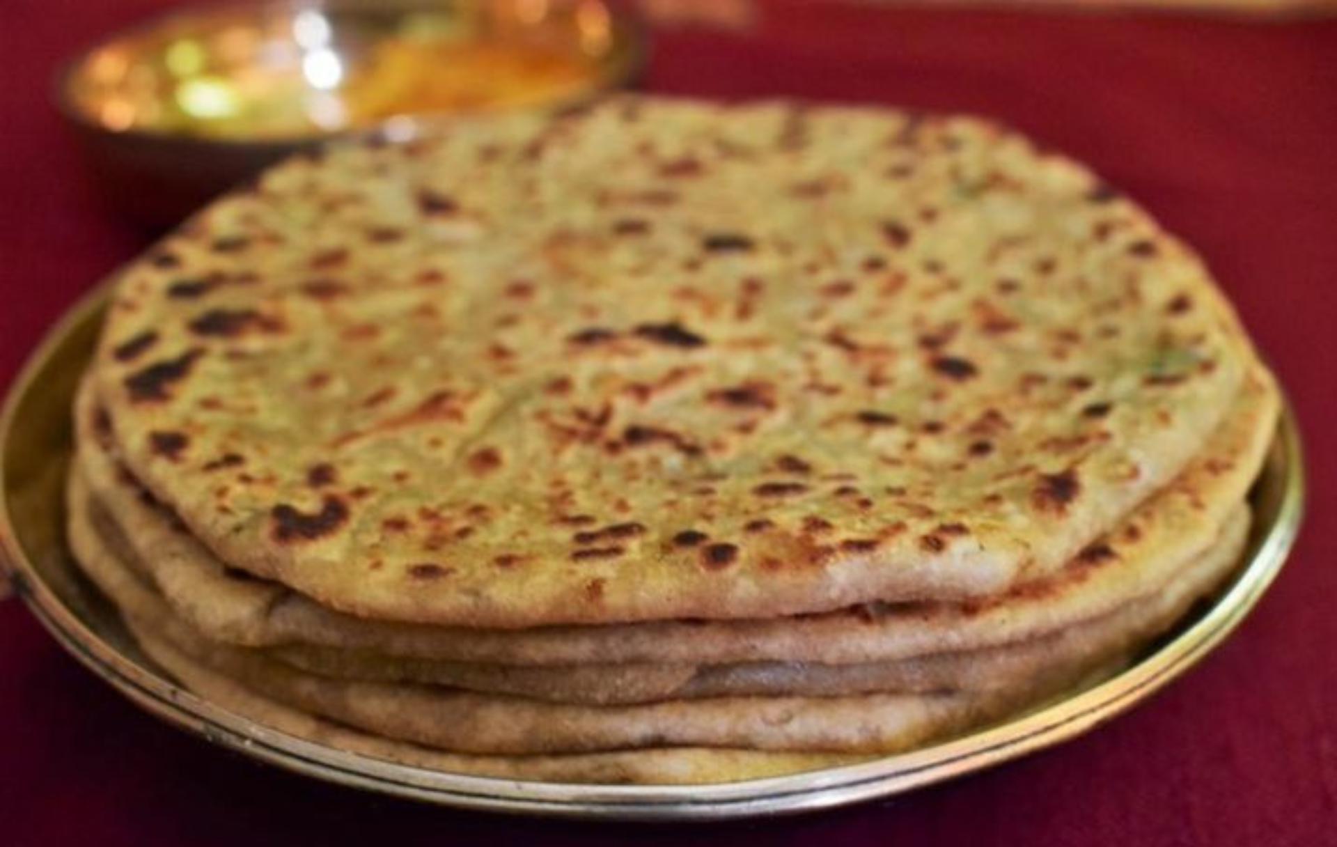 Hot, crispy paratha stuffed with fresh grated cauliflower and desi spices, roasted in ghee and served with curd & pickle at Flavour Of Champaran.