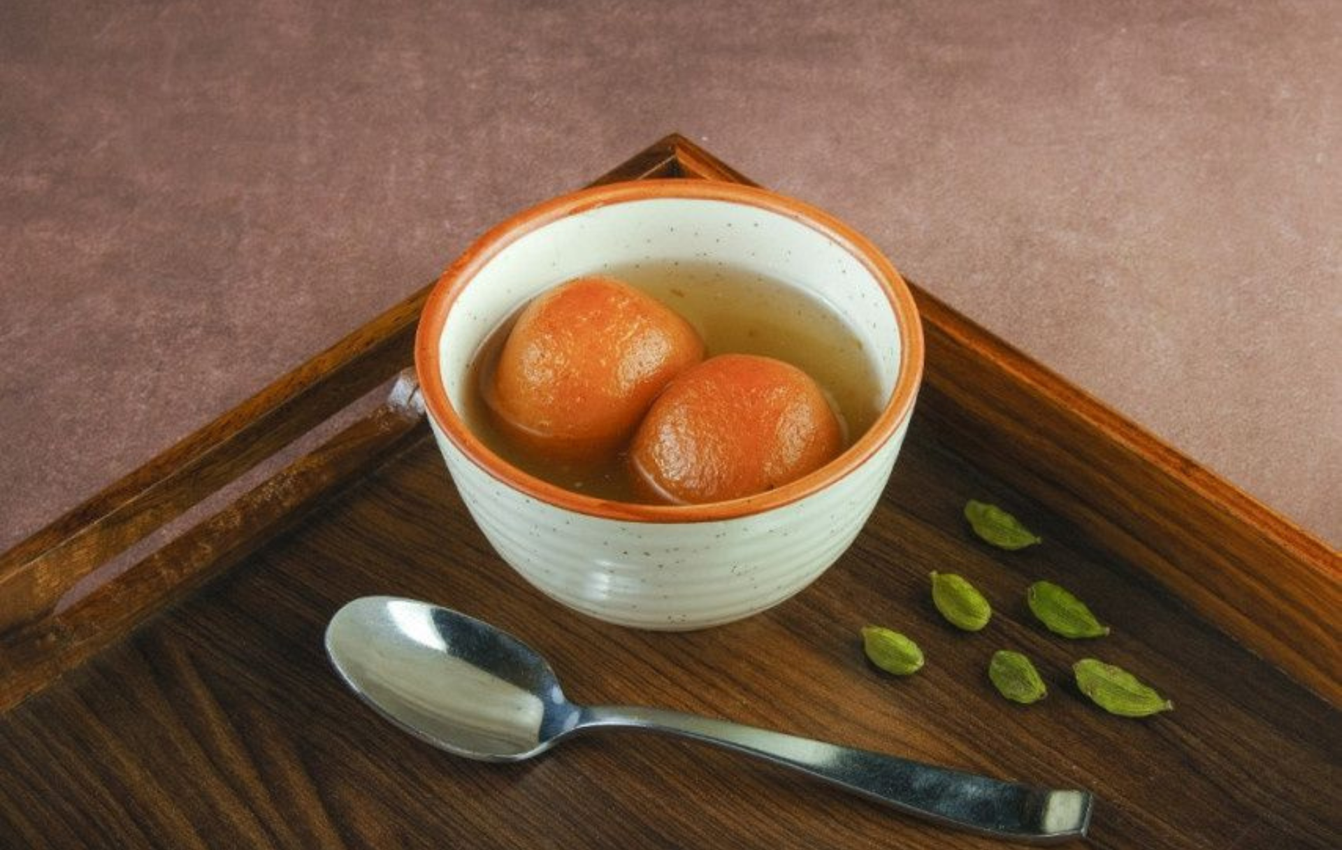 Gulab Jamun – soft, juicy dumplings soaked in sugar syrup, warm and sweet, delivering a classic Indian dessert experience loved by all.