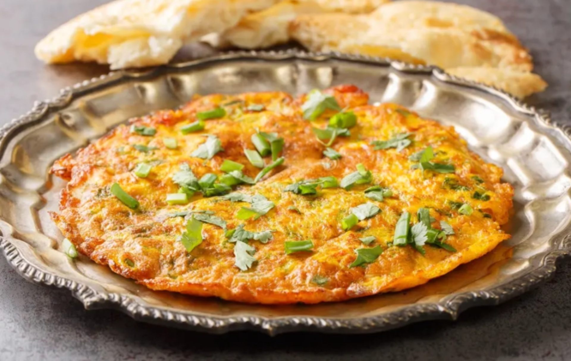 Fluffy omelette loaded with onions, green chilli, coriander and desi spices, cooked fresh and served hot for a perfect spicy bite.